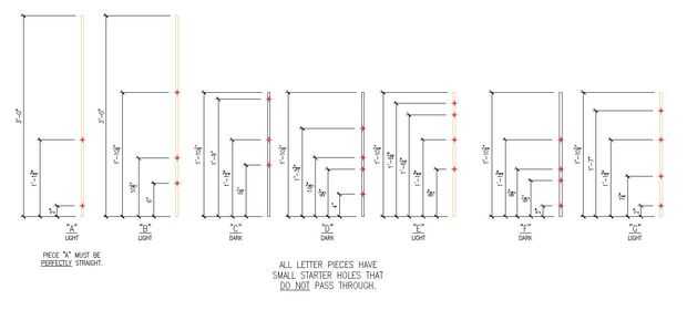 Usted tendrá que cortar 7) 3' - 0" piezas y 6) 1' 10-¼" piezas. (Refiérase a los planos adjuntos) Pieza "A" es una pieza muy prominente, y pega hacia fuera un poco, así que escoge tu haciendo de este uno. Para asegurar que todas las piezas eran la misma longitud y la Plaza, corté cada uno un poco demasiado. Luego les afianzado con abrazadera juntos y cortar los extremos con una sierra circular. Nota: Los planes PDF se adjuntan a este paso también.