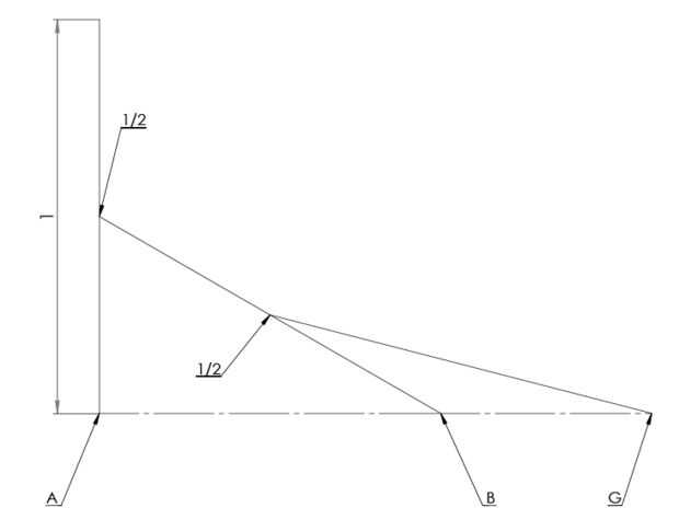 3. Con una tercera parte duplicar la longitud, alinee uno de los extremos hacia el punto medio de la longitud del segundo y luego otro extremo respecto al plano horizontal. (G)