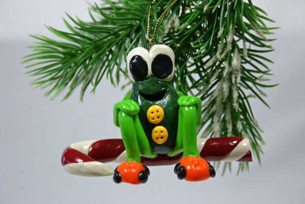 Esta rana feliz con los pcteres de ruedas naranja es un personaje de mi iPad interactivo libros, la serie de Freddy y Phil, Phil. Phil lleva siempre dos botones amarillos y como se puede ver, es a bastones de caramelo. Phil de colgar en su árbol de Navidad, lo de la materia en una media (sólo asegúrese de lo que fuera por el 25 de diciembre) o Phil donde quieras un poco caprichoso toque para las vacaciones!