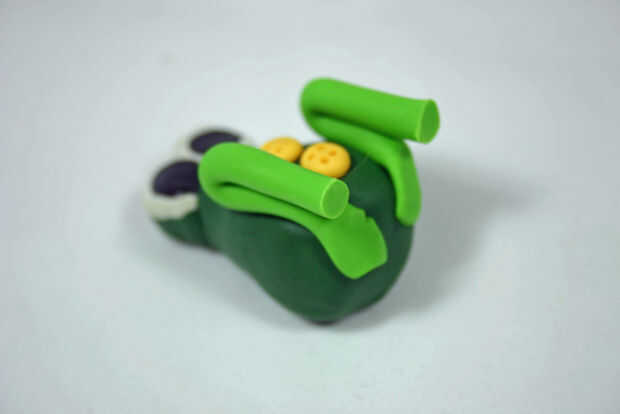 Coloque las piernas en Rana presionando en el cuerpo y luego doblar cada pata en un bucle.