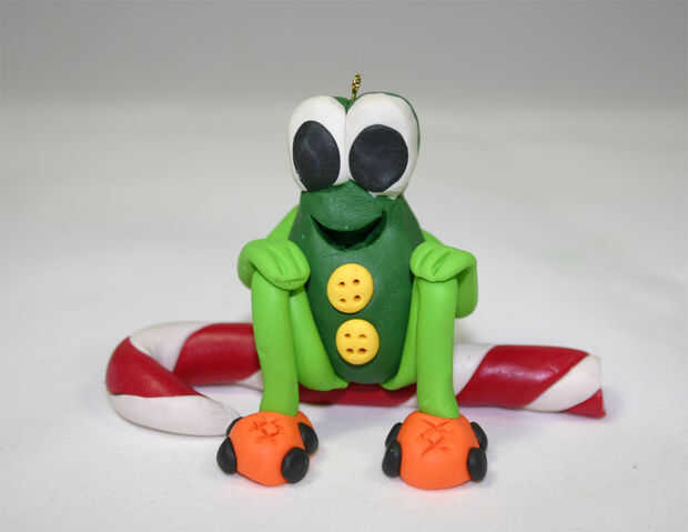 los puestos de perros calientes y helado se hicieron (junto con sus clientes) para ayudar a poblar Froggy mundo, el parque de diversiones aventura ranas.Las ranas fueron hechas usando arcilla Sculpey III Oven-Bake y luego al horno. El "brillo" v