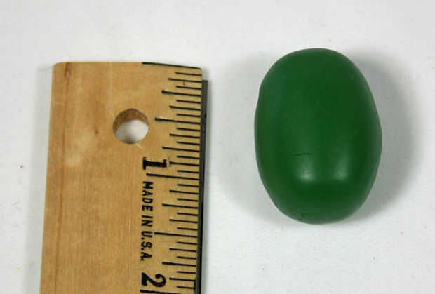 Cuerpo de Phil: rodar un 1¼ pulgadas en forma de óvalo oscuro bola verde, aproximadamente ¾ pulgadas de espesor.