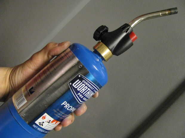 Fui a la sección de fontanería en Walmart. Recogí esta antorcha de la soldadura por $15. En la misma isla que venden soldadura de plata libre de plomo. La soldadura que compré fue de $10 y también vino con un contenedor de flujo, un cepillo de aplicación y un trozo de papel de lija. Tan total de daños: $25. Estos pendientes de uso solamente una pequeña fracción de eso pero se llega a utilizar para todo tipo de otros proyectos.
