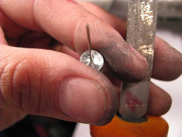 Archivo a la soldadura sobrante de la parte delantera y trasera. Use papel 300 grano de arena para limpiar apagado el último del exceso restante.