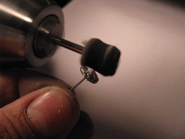 Pulir los cabezales con papel de grano arena 2000, compuesto de pulido y una rueda de pulir.
