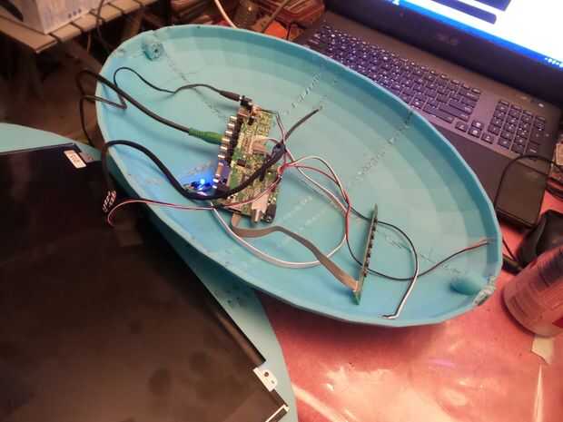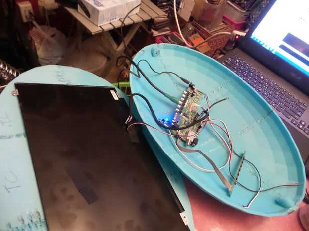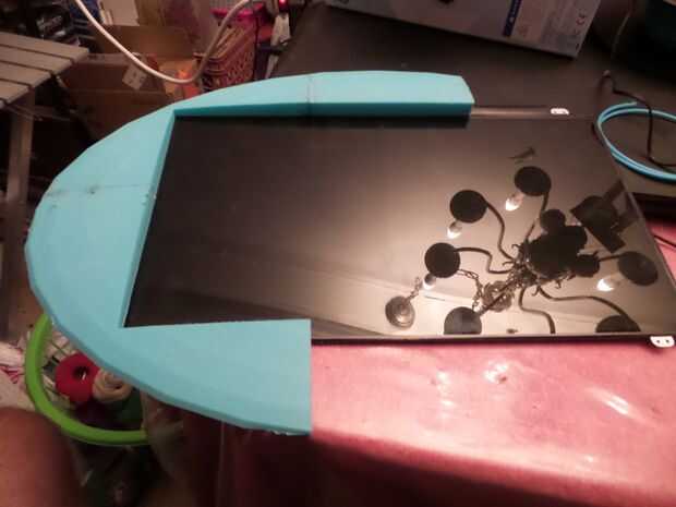 me aqlso taladrar un agujero en la espalda lo suficientemente grande para el cable de HDMI, así como los controles del teclado y la energía 12v cable desde la parte inferior de la mitad.