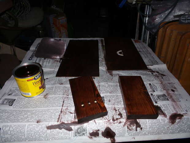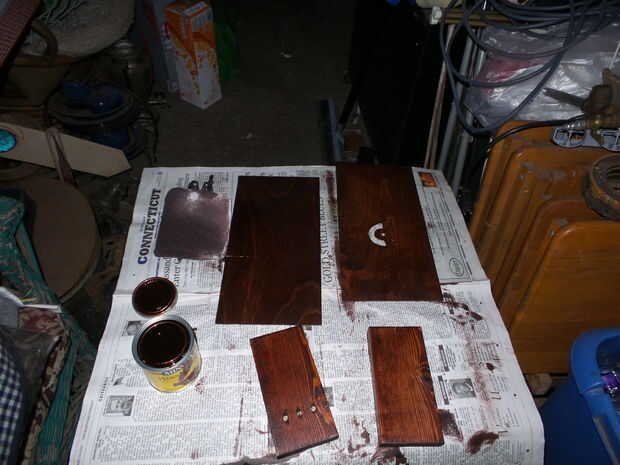 una vez que tuve las piezas cortadas y arena ellos teñido color caoba.