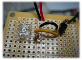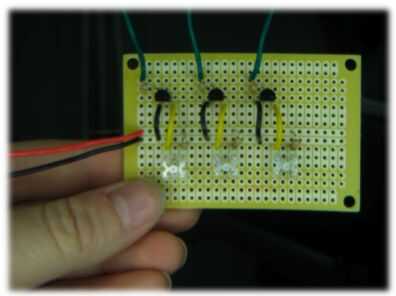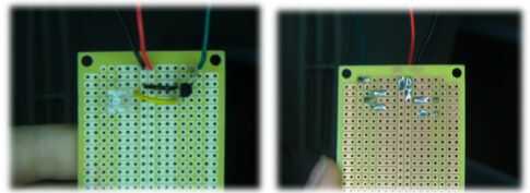 17. Repita los pasos 12 a 16 dos veces poner el Led azul y rojo en el lugar. La Junta debe verse así cuando termines.
