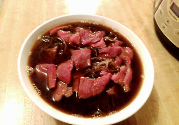 Quitar el caldo del fuego y el caldo de la cepa en un tazón mediano, teniendo cuidado de solo reservar el líquido y no las especias. Me gusta usar un colador de metal y filtro de café para esto. Limpiar la cacerola y volver líquido de la cacerola. Añadir salsa de soja y salsa a la cazuela de pescado y hervir.
