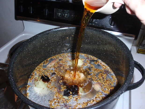 - Añada suficiente agua para llenar la olla y dejar unas 3 pulgadas desde la parte superior (para el bote que he utilizado, he añadido 9 cuartos de galón de agua)