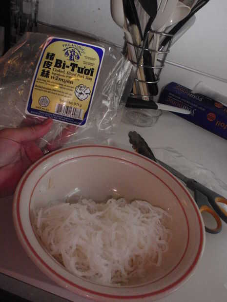 - Tiras de piel de cerdo para el caldo a calentar un poco ^