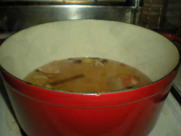 -Cuele el caldo en una olla nueva, recalentar.