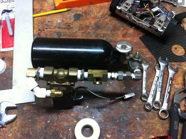 El sistema neumático en Phoenix es una manera muy sencilla. Es en una sola dirección de flujo con un orificio de purga para retraer el pistón tras su toma. Utiliza un tanque de paintball modificado 16oz, y la válvula de solenoide es un Burkett 5404. La válvula se acciona mediante un interruptor de relé RC. La ram es 2.5" diámetro 4" carrera.