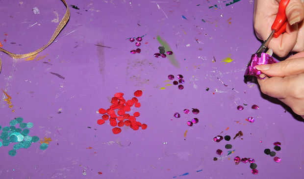 Las bridas se hicieron haciendo un círculo de luz fino elásticas ajuste ligeramente alrededor de los hocicos de los perros. El elástico entonces fue cubierto con la cinta de oro fina. La cinta se amplió luego para ir a ambos lados de la cara y alrededor de la parte posterior de la cabeza, como brida de un caballo. El frenillo entonces fue decorado con pequeños círculos de corte de varias telas.