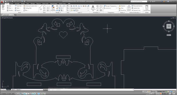 Quería un diseño recargado, así que hice una búsqueda para diseño barroco para inspirarte. Agarró unas imágenes de mi búsqueda y trazó sobre ellos en CAD, luego puré pocos diseños hasta que estaba contento con el resultado.
