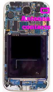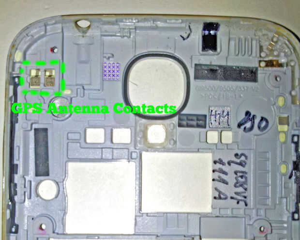 En el lado de plástico: en la esquina superior izquierda, verás los contactos metálicos de la antena GPS