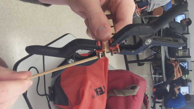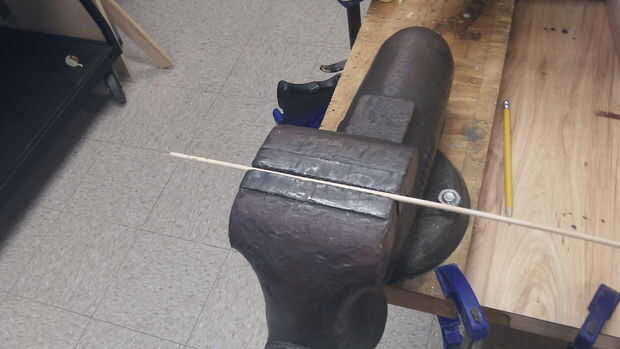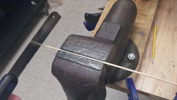 Después de todo haya secado, tome la barra pasador de las piezas. Medida 3/8" en el extremo de la varilla de pasador y corte. Repita este paso para que tengas dos 3/8" piezas de barra de pasador. Colocar las dos piezas juntas y deslice las varillas en su lugar.