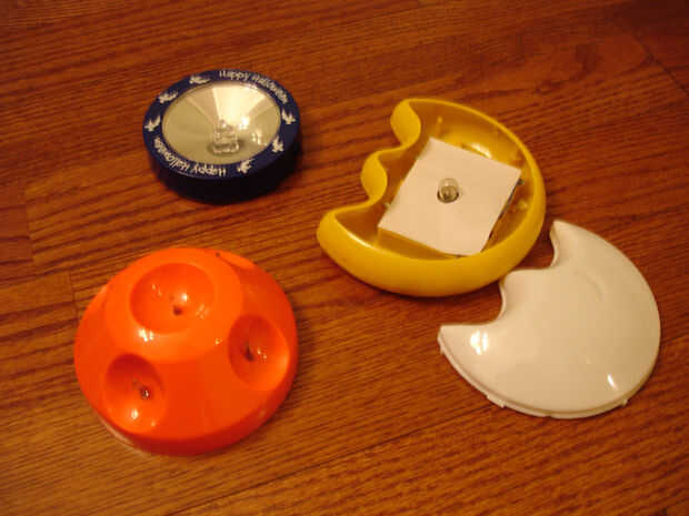 Se dispone de una amplia variedad de luces de calabaza. Muchos tienen opciones de parpadeo para imitar una vela de verdad, o tienen luces de colores para mayor efecto. He encontrado que algunos de mis favoritos luces son realmente poco taplights que encontré en una tienda de dólar. Sólo quitar la tapa superior y presione el pequeño botón a. Estos tienden a ser mucho más brillante, por lo que las regiones sombreadas muestran mucho mejor incluso con luz ambiente.