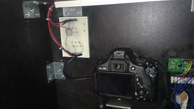 Atornille la cámara a la caja y coloque la tableta en la posición correcta.