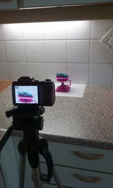 Obtener el modelo y la herramienta a un lugar donde es bueno un rayo. Poner alguna cinta o algo en su modelo para asegurarse de que dice en su lugar al girar la rueda.