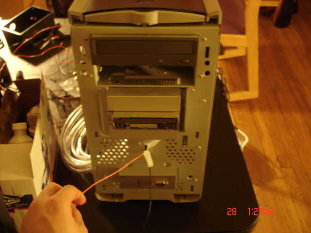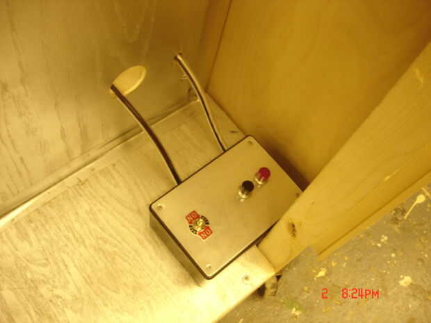 Fue hackeado el botón para encender el ordenador y los cables lo extendió a la parte de caja de luz de la cabina. Dos solenoides empujar manualmente la cámara y la impresora interruptores de encendido/apagado para activar el.