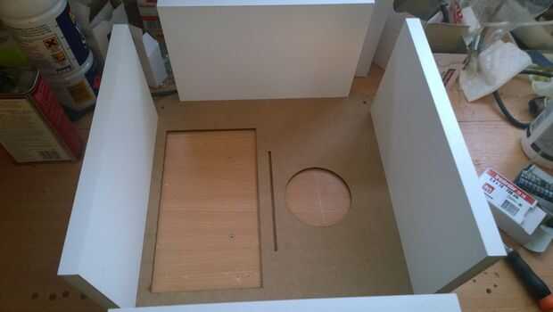 Taladre un agujero en la parte inferior para el sombrero de altavoces, he utilizado un taladro de 38mm, medido en el centro.