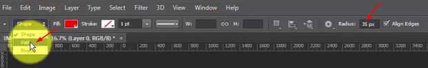 Introduzca el valor del radio (en este ejemplo elijo 35px)
