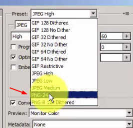 Si la capa de fondo es transparente, luego guardar imagen como PNG-24