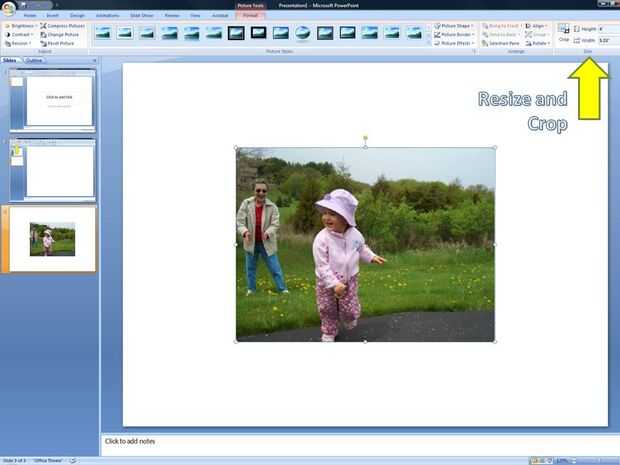 Insertar tu foto y cambiar el tamaño para llenar toda la "diapositiva". También puede hacer algún recorte en este momento.