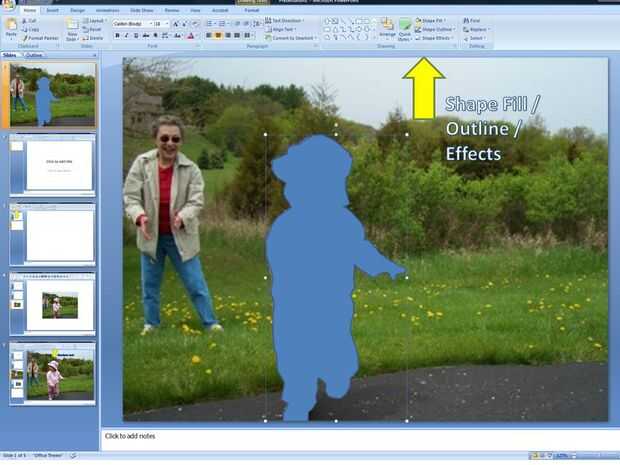 Puede cambiar el color de la forma utilizando herramientas de forma simple de PowerPoint 2007