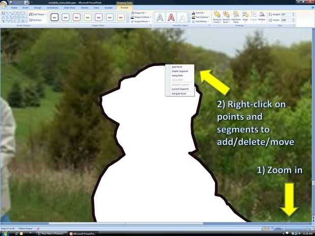 1) si todavía no lo has hecho, acercarse para que puedan ver los puntos en el contorno.