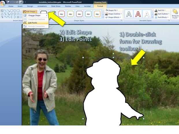 1) haga doble clic en la forma de fantasma para acceder al menú de herramientas de dibujo
