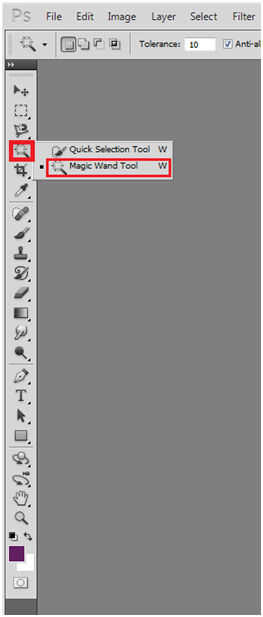 - 5-A. Haga clic y mantenga la herramienta "Selección rápida" (la cuarta herramienta de la parte superior), haga clic en la "herramienta varita mágica".