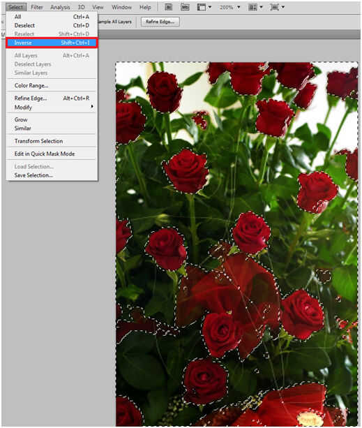 Ahora debe ver que su selección ha sido invertida a todo que no selecciona con la varita.