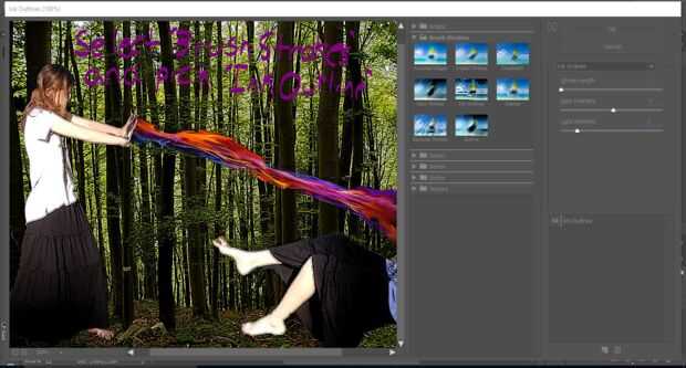 Hay un montón de filtros, y os animo a probarlos todos! Pero ahora voy a utilizar trazos de pincel, tinta de contorno. Haga clic en el menú de las pinceladas desplegable y seleccione contorno de tinta. Puede cambiar cómo grandes son los trazos, y lo oscuro son. Le animo a explorar y utilizar su imaginación!
