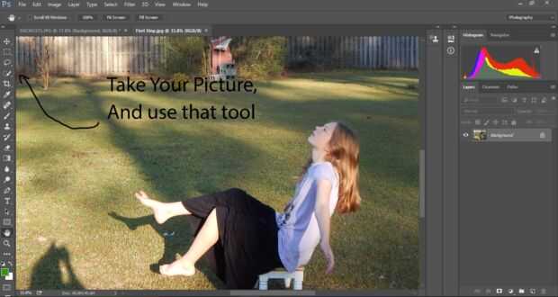 Paso uno, necesita importar una foto sentado en un banquillo o una silla usted (o un amigo). Es necesario ver como el ser golpeado con una bola de fuego. Usted puede tomar su foto en cualquier lugar, si se sienta delante de una pared de color sólido, puede ser más fácil hacer la selección, más adelante. A continuación, seleccione la herramienta Selección rápida (la herramienta de la flecha apunta hacia).