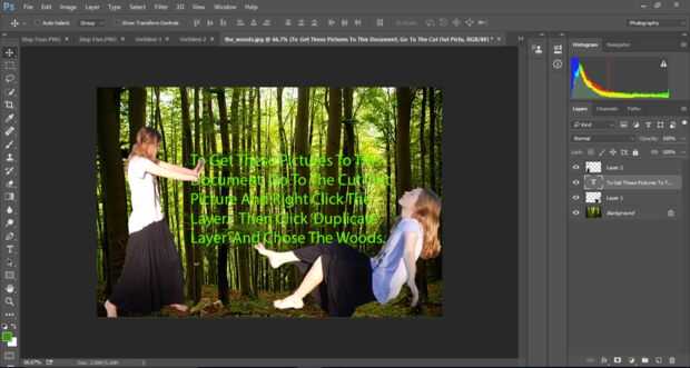 Ahora importará las dos imágenes que corte antes. Ir a la página son en y haga clic con el botón derecho la capa. Puede encontrar las capas en el lado derecho. Haga clic en "duplicar capa" y al hacer clic en el menú desplegable, seleccione la capa que es su formación. Hacer esto con tanto recorte de fotos, luego cambiar el tamaño. Para cambiar el tamaño haga clic en el menú 'Editar' en la parte superior ir a 'Transformación libre' y puede cambiar el tamaño de tu foto. Proporciones para mantener presionada la tecla Mayús mientras se cambia el tamaño.