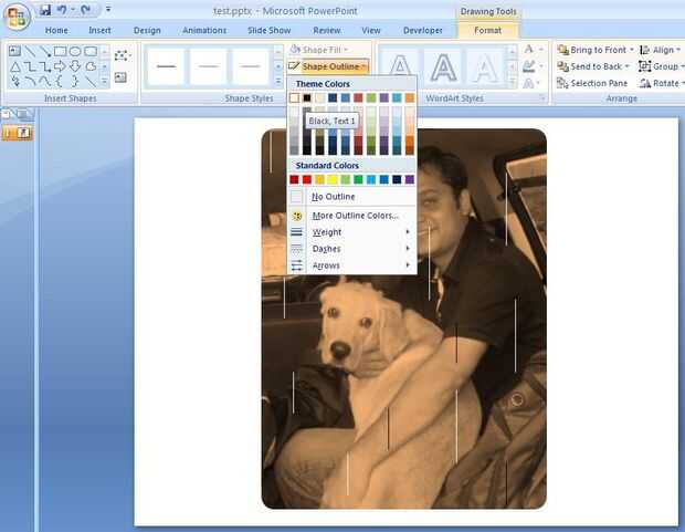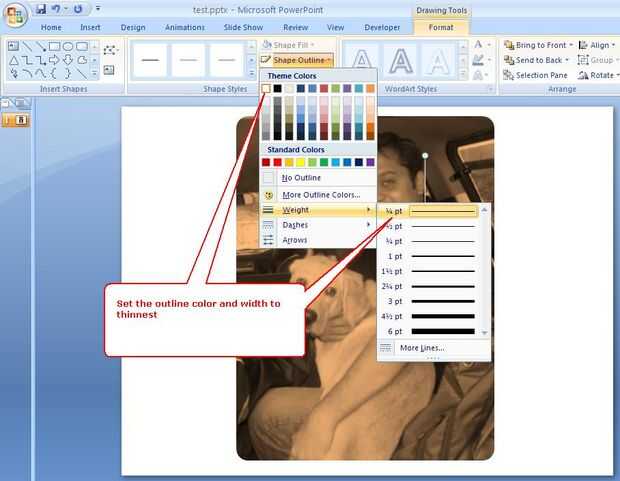Insertar una línea en la imagen. Establezca su frontera color blanco y ancho a delgado como sea posible.