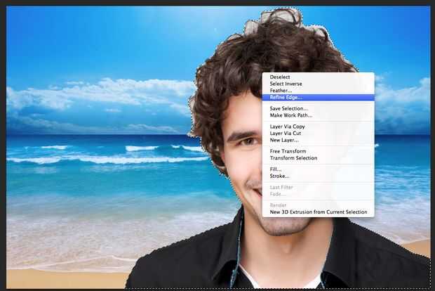 2. Pulse M en el teclado para utilizar la herramienta de selección, luego haga clic derecho sobre el lienzo y elegir perfeccionar borde, en este momento, un menú emergente aparece en su lienzo.