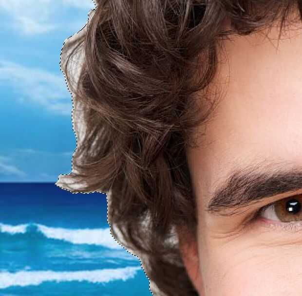 1. zoom su tema, específicamente en la parte de pelo que nos proporcionaran. Elija al tema en el panel capa y mantenga presionado ALT + Click entonces te darás cuenta ahora que el tema está siendo seleccionado y hormiga que marcha es todo alrededor de él.