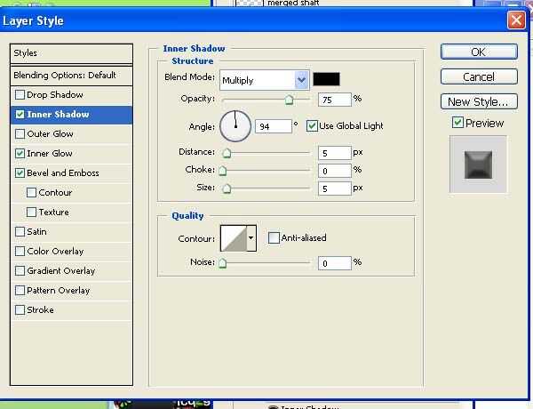 Haga doble clic en "Sombra interior" y jugar con la configuración. Usé: modo de mezcla = multiplicar, opacidad = 75%,