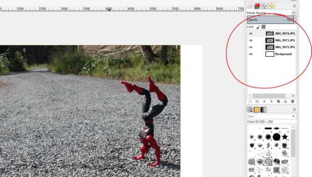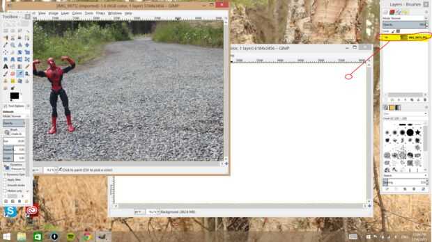 A continuación, seleccione una de las ventanas de la imagen (no una nueva que acaba de crear), haga clic en y mantenga la capa mientras arrastra hacia la nueva imagen de fondo.