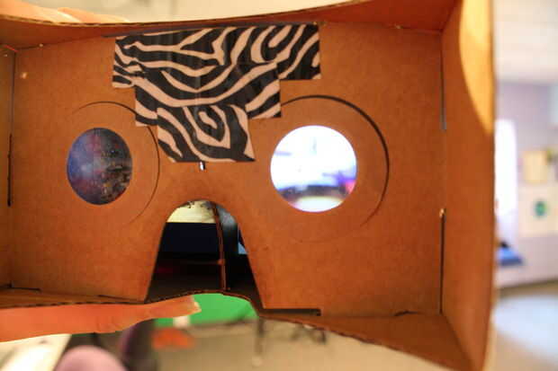 Cartón de Google un dispositivo que le permite descubrir el mundo de la realidad Virtual.¿Y te fuiste a las películas en 3D? ¿Llevaba gafas especiales? ¿Se aleja volando hacia tu cara flechas, piedras, tiburones con dientes puntiagudos y ardillas lin