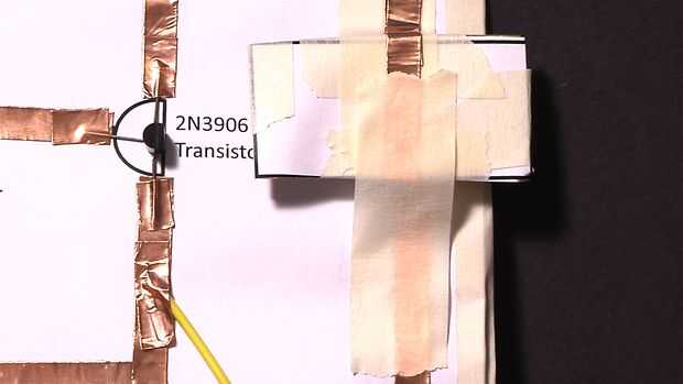 Apile las baterías de dos monedas encima de la otra con el fondo con textura de una batería en el lado "+" liso del otro. Coloque la pila de debajo de la aleta para que la parte inferior y la parte superior de la pila son en cinta de cobre. Asegure la tapa con cinta de enmascarar.