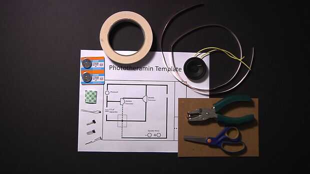 - 1 – plantilla Phototheramin (ver archivo adjunto más abajo - el proyecto puede realizarse sin la plantilla, pero ayuda, sobre todo si no está familiarizado con los circuitos)