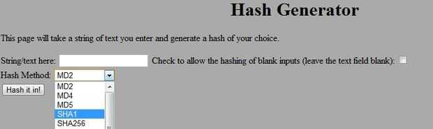 < tipo de entrada = 'Enviar' valor de = "Hash a pedazos." / >< / forma >< p / >