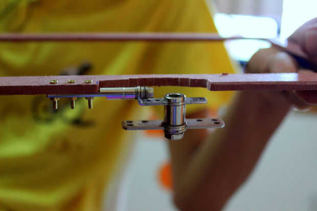 Nota Es importante conseguir una bisagra de fricción de tamaño perfecto para la pantalla de la inclinación de la laptop porque demasiado pequeña tamaño bisagra será inestable y de mayor tamaño se verá torpe. Utilizar el mecanismo de tornillo y tuerca (kit del adaptador del transistor) para fijar la bisagra a la corte. También ser muy preciso al presentar las partes, exceso presentación permitirá la visualización sueltas y se caen. "Cada milímetro cuenta aquí!"