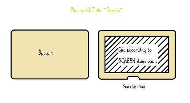 Una hermosa flor es incompleta sin sus hojas... del mismo modo portátil es incompleta sin una inclinación o biombo. Este paso explica los planes de corte de la pantalla del estilo de la inclinación y el especial bisagra.