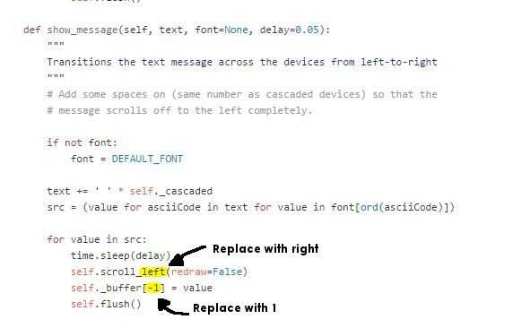 Antes de ejecutar el script setup.py, tienes que cambiar el código en el /max7219/led.py.