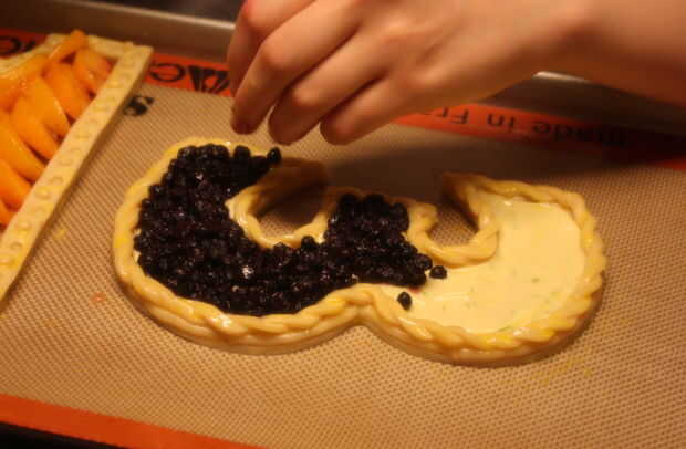 Una vez que se mira buena, algunos eggwash del cepillo sobre la frontera, poner en el horno y dejarlo ir para 30-40 minutos, estará listo cuando la frontera tiene un poco de un bronceado (que veremos en el siguiente paso!).